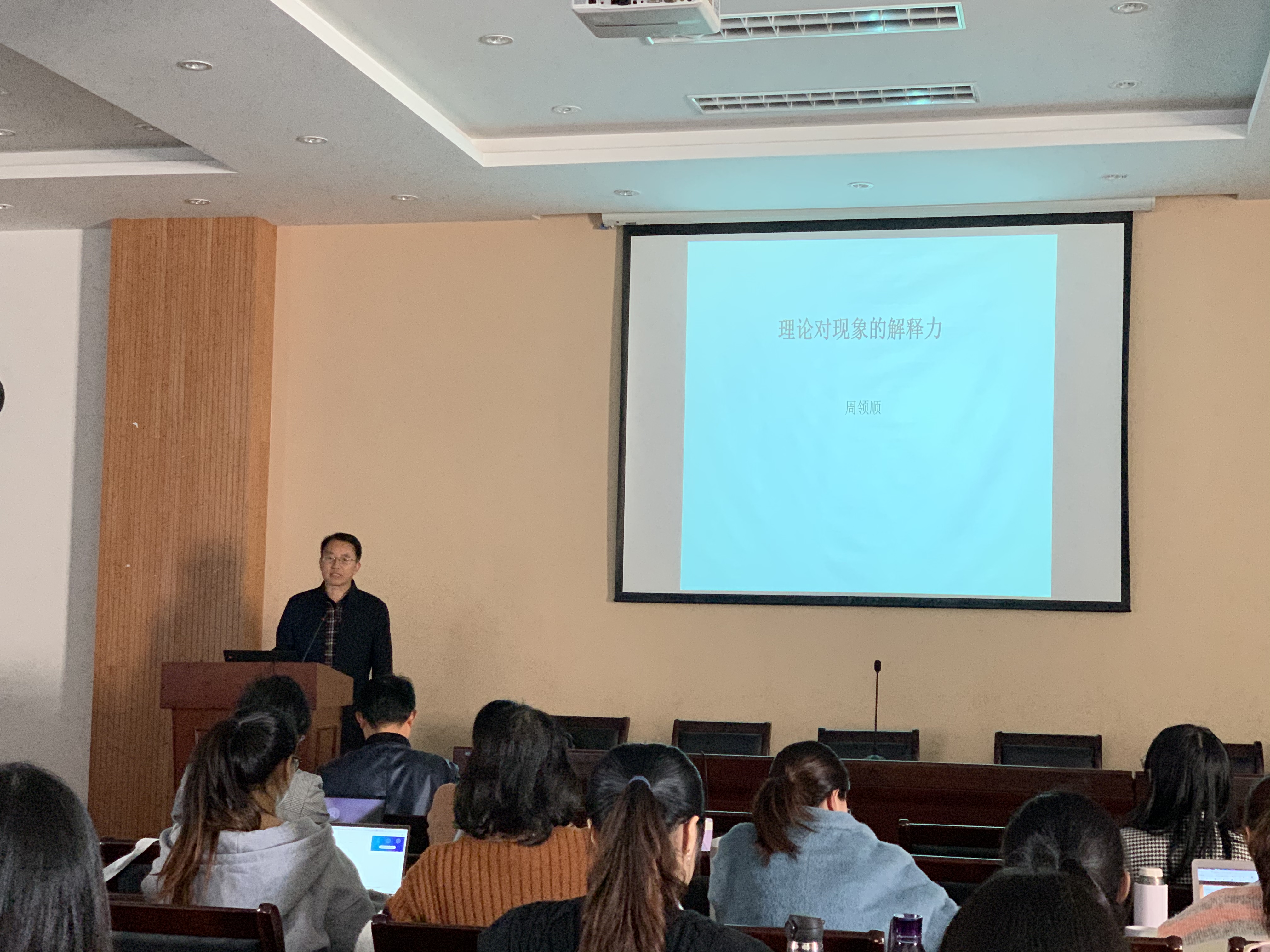 师生作题为“理论对现象的解释力”的学术讲座。讲座由副院长(主持工作)曹新宇主持,黄色动漫