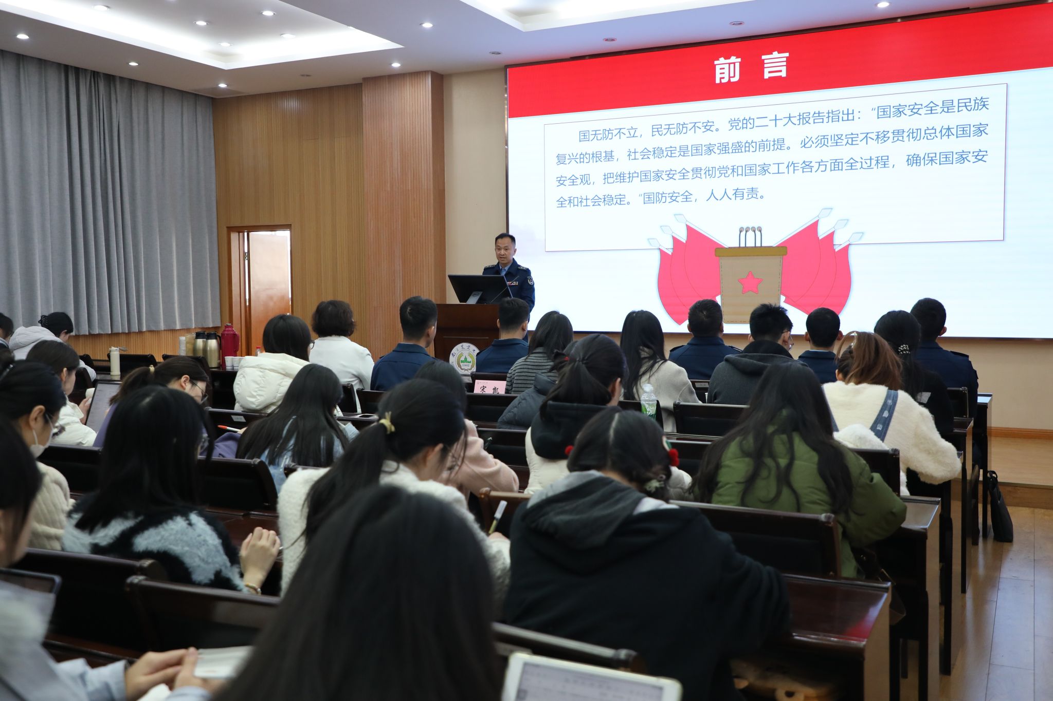 活动第一部分,任晓东作了题为“认清新时代国家安全形势,争做国防安全的坚定捍卫者”的专题报告。报告讲述了国防安全的重要性、当前国防安全面临的主要矛盾和维护国防安全的具体措施等三个部分。任晓东介绍了习近平强军思想的主要内容,引用丰富的案例对国防安全的形势进行了深入分析,结合大学生实际提出了从自我做起,维护国防安全的具体要求。他强调,国家安全是民族复兴的根基,社会稳定是国家强盛的前提,在当前百年未有之大变局和中华民族伟大复兴战略全局背景下,我们必须坚定不移地贯彻总体国家安全观,把维护国家安全贯彻到党和国家工作的各方面全过程。