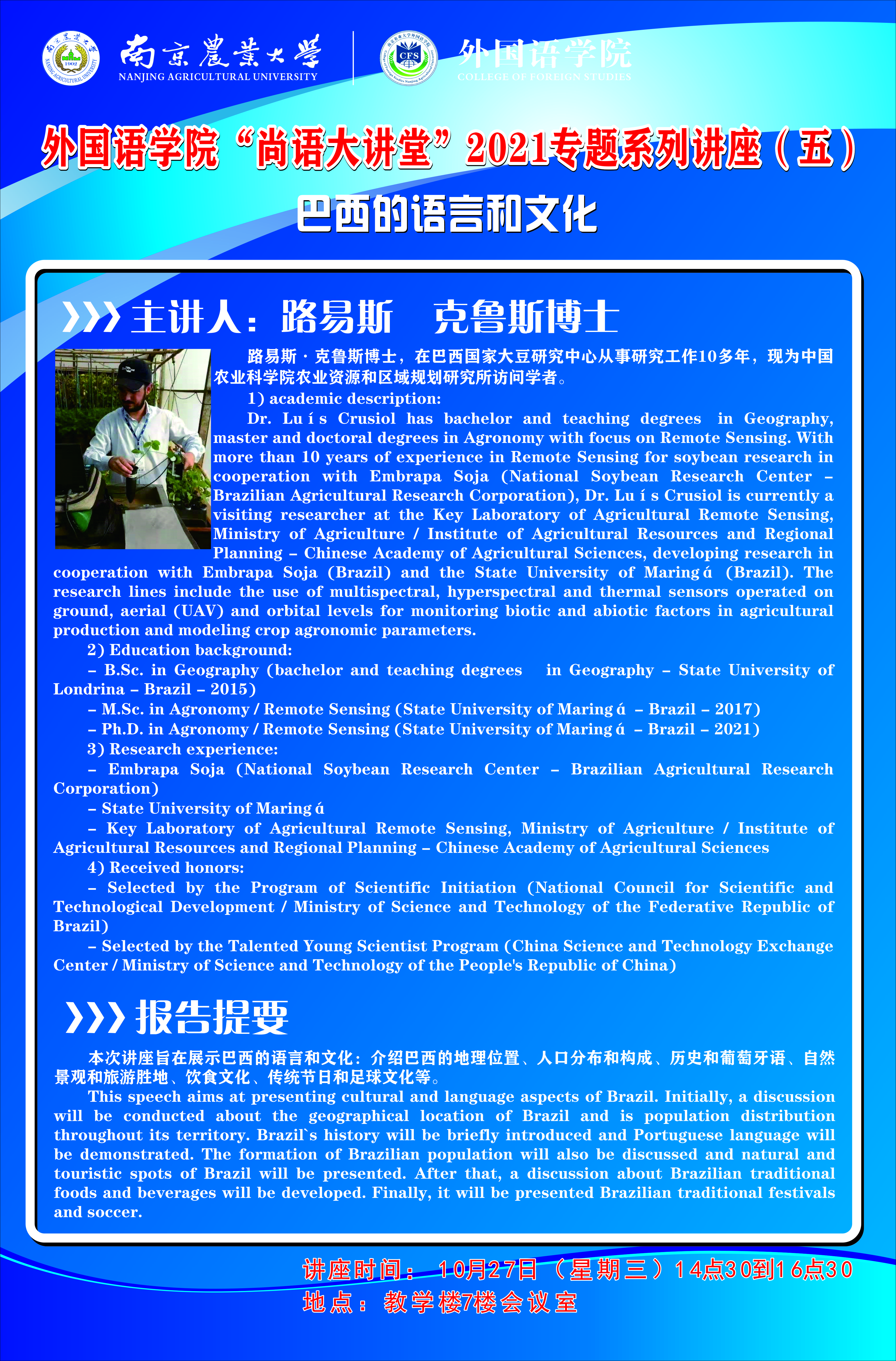 综合楼三楼 025-84395755(院办) 025-84396722(学生办) 邮编:210095 地址:南京卫岗1号
