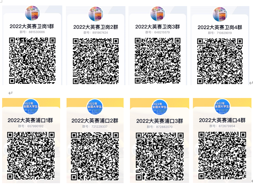 有关考试通知将在QQ群发布。报名后,请根据自己所在校区,加入下面的QQ群。每个人只需加入一个QQ群。