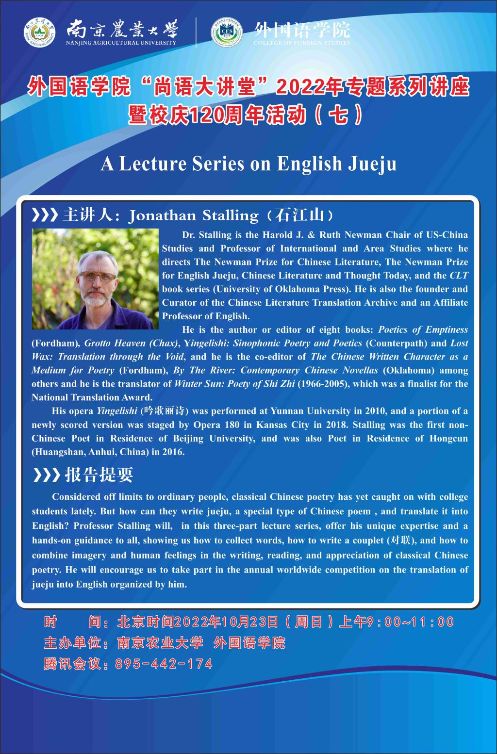 讲座题目:A Lecture Series on English Jueju(绝句)