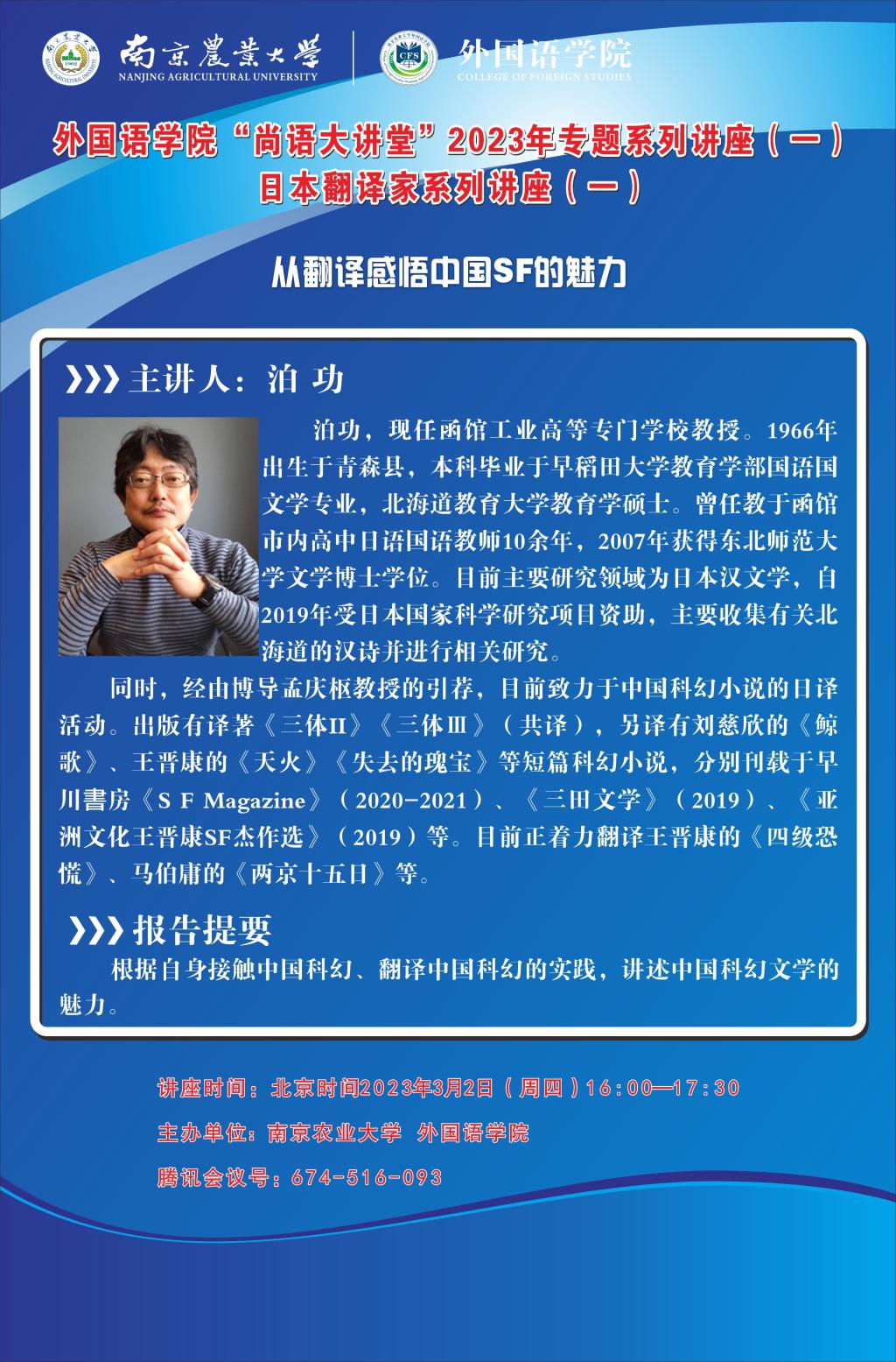 上一篇:“尚语大讲堂”2023年专题系列讲座(二) 日本翻译家系列讲座(二):我与中国科幻的不解之缘