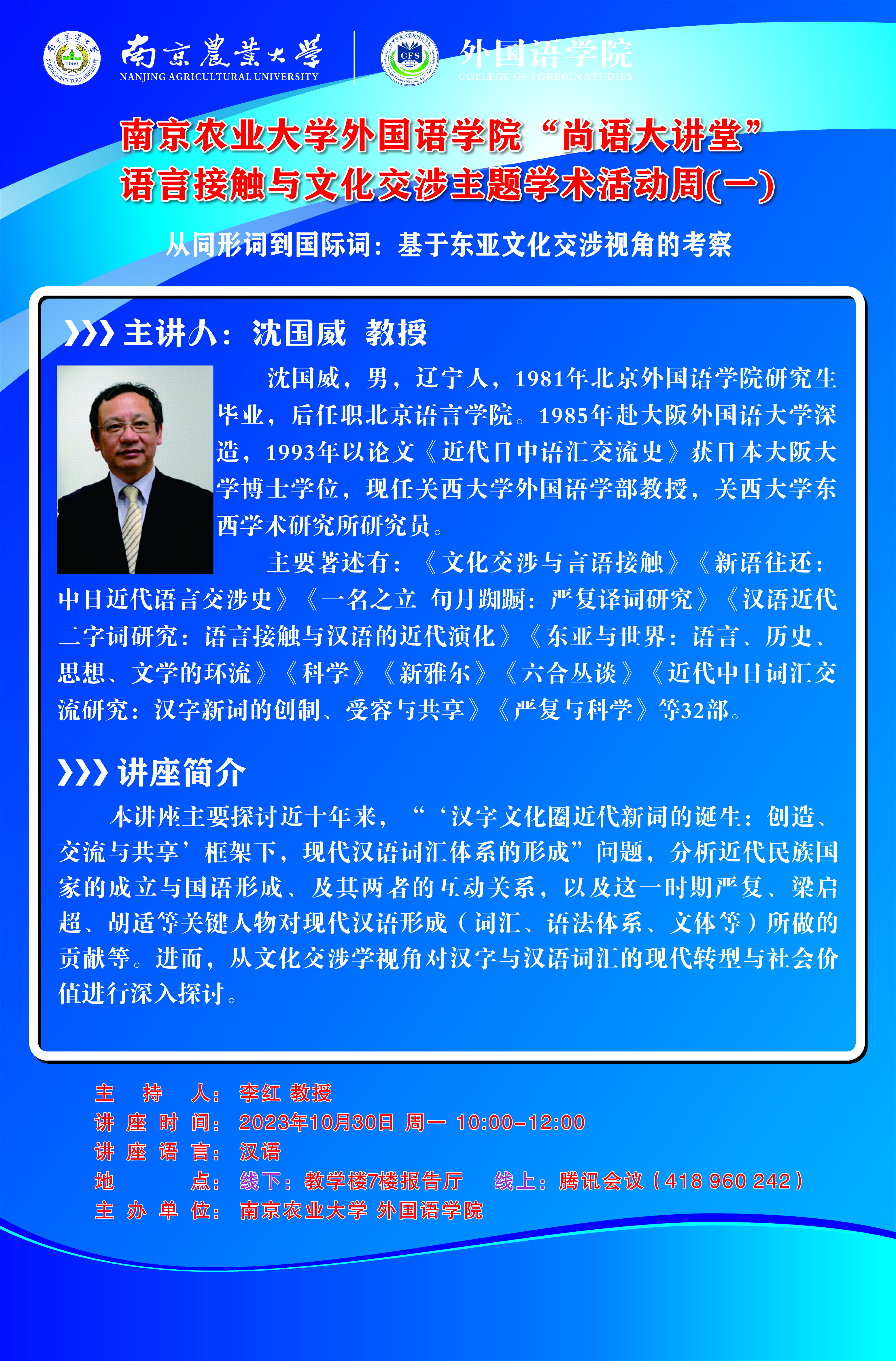 下一篇:讲座|中国人如何学习英语并论Pidgin——异语言文化接触现象