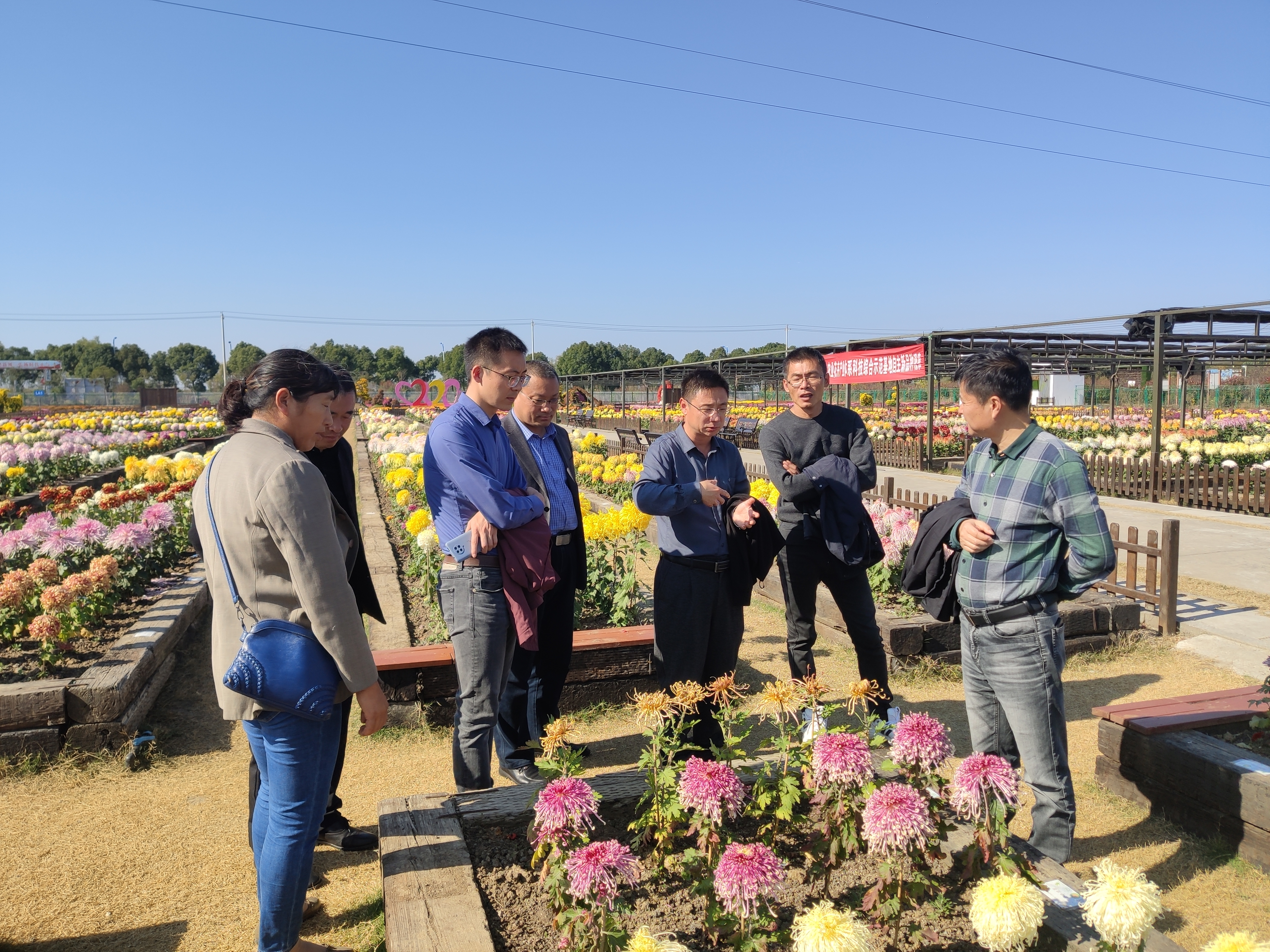 11月18日,江苏省天一中学后勤主任邓洪贤一行六人到我校湖熟菊花基地开展中学生态课程调研与考察,我校园艺院党委副书记文习成、外语院党委副书记韩立新等一行四人陪同。