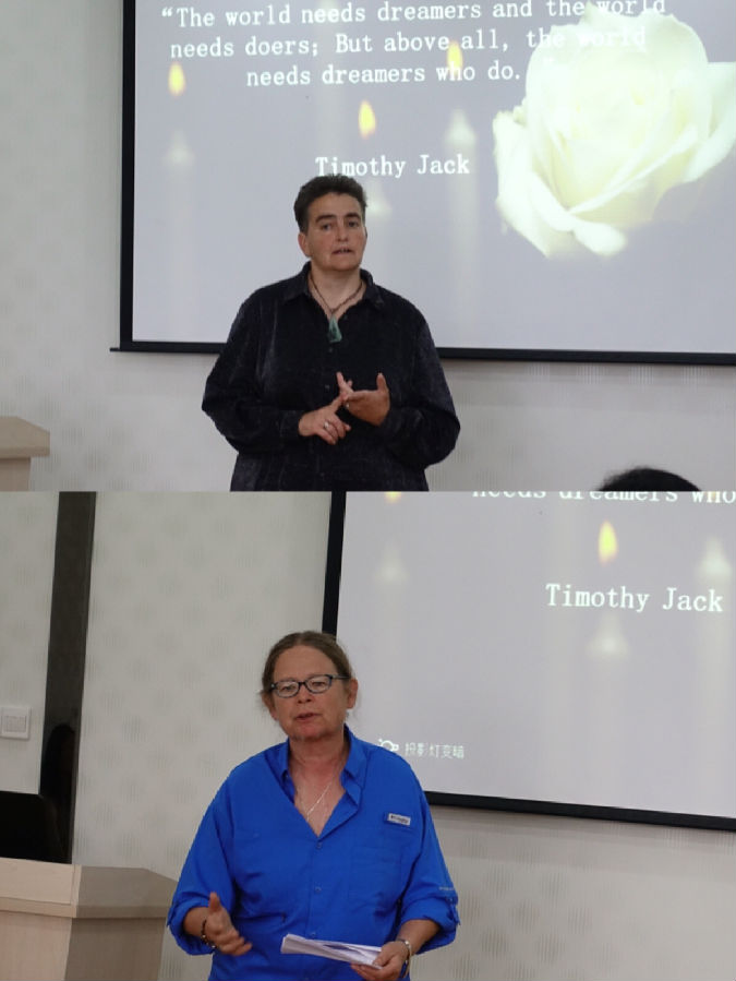 丰蓉代表国际合作与交流处发表追思感言。她高度赞扬了蒂姆以及所有来校的外籍教师,精心传授知识和文化、忘我工作无私奉献的精神。外籍教师队伍已经成为我校师生的良师益友,期待大家传承这种良好传统,为学校国际化事业添砖加瓦。