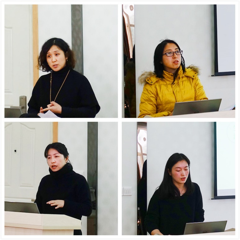 随后,公共外语部教师张萍、刘世英、鲍彦和朱徐柳各自汇报了“农业科技文献读写译”、“商务英语视听说”、“英语演讲”和“传媒英语”课程的建设情况。内容涉及课程概况、教学目标、课程设计、教学方法、教学评估、课程效果和存在的问题。韩纪琴对15版大学英语教学改革之后的拓展英语课程建设情况给予肯定,她认为目前的课程内容更加符合学生需求,应用性强,能更充分地调动学生的英语学习热情。