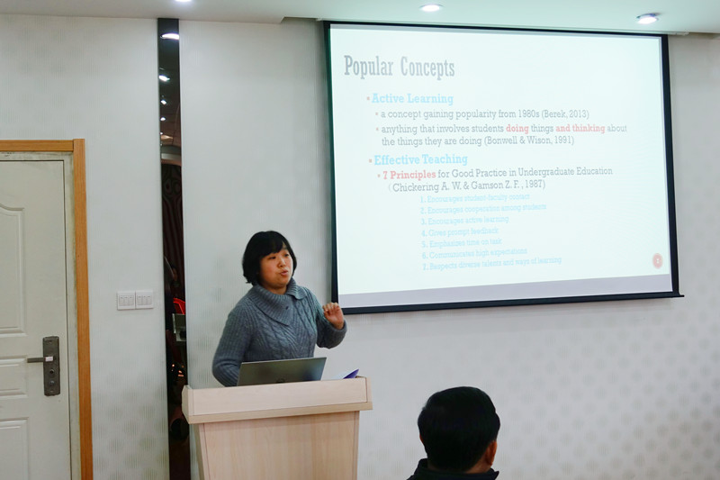 教师报告。赴MSU进修教师、大外部主任王菊芳老师做了题为:“课堂教学中的师生交流策略”的报告。王菊芳介绍了MSU的“以学生学习为中心”的教学理念,及学生“积极学习”和教师“有效教学”的教学模式,并就考核标准、教师授课范例等方面对MSU与我校进行了对比。王菊芳认为教学细节决定成败,我校今后在教学过程中应更多地体现以学生学习为中心的理念,重视与学生的沟通交流,尊重学生的知识结构和个体差异。