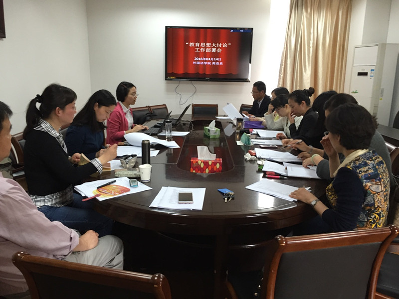 英语专业全体教师在教学楼E302召开教育思想讨论会议。会议以“培养一流本科人才,建设世界一流农业大学”为主题,曹新宇副院长主持本次会议。