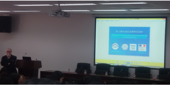 会议以“从传统到多元”为主要议题展开培训与研讨,会议涉及法语专业教学法、法语演讲比赛、全国法语教师培训班等内容。大会邀请了上海外国语大学校长曹德明教授、比利时列日大学马克德菲教授、广东外语外贸大学徐真华教授、复旦大学蔡鑫教授等人为青年教师进行讲座培训。讲座涉及法语教师在当今世界所遇到的新形势和新挑战、戏剧在法语对外教学中的作用、法语的规范与变化、蔡氏教学法及展示等精彩内容,报告使来自全国高校的近百名法语青年教师受益匪浅。