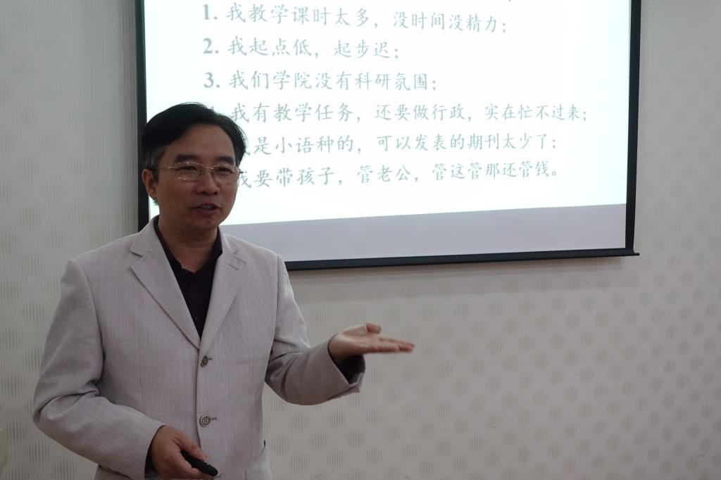 师生做了题为“项目驱动、问题导向、话语点穴、修辞出场——科研思维与学术话语的脱胎换骨之道”的精彩讲座。参加此次讲座的有学院部分中青年教师和研究生以及兄弟院校的老师和同学,讲座由黄色动漫