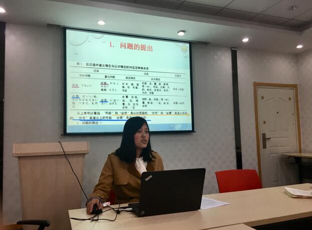 接着,周萌老师做了题为《基于学习者习得状况的日语情态意义扩展研究》的报告,介绍了日语母语者与学习者对日语中情态动词认知的差异,并利用统计学的知识进行了数据分析,最后得出不同能力的学习者与母语者对于词汇的理解存在不同偏差的研究结论。交流阶段,各位老师结合自身研究领域和学术成果,积极踊跃地提出了见解和建议。参会老师都对统计与语言学研究相结合的研究方法表示肯定,并提出今后可以提高创新意识利用跨学科的研究方法进行学术研究。