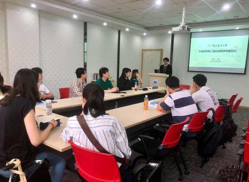 “二级日语笔译专题培训”讲座在教学楼A310顺利举办。本次讲座邀请学院日语系李红副教授主讲,日语系研究生及部分本科生共14人参加。