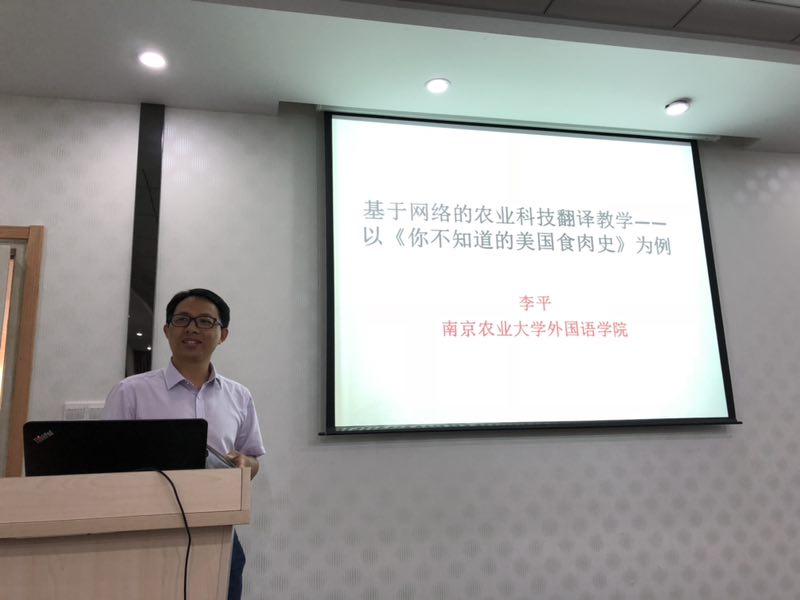 李平教授的主旨报告题为“基于网络的农业科技翻译教学——以《你不知道的美国食肉史》为例”。他介绍了以本科生为教学对象的农业科技书籍翻译的教学经验,就《你不知道的美国食肉史》一书翻译过程中“Farmer’s Market”的术语翻译实例进行了详细探讨。他提出基于网络的翻译可以在质和量两方面提高科技翻译的概念正确性与翻译的总体效率。