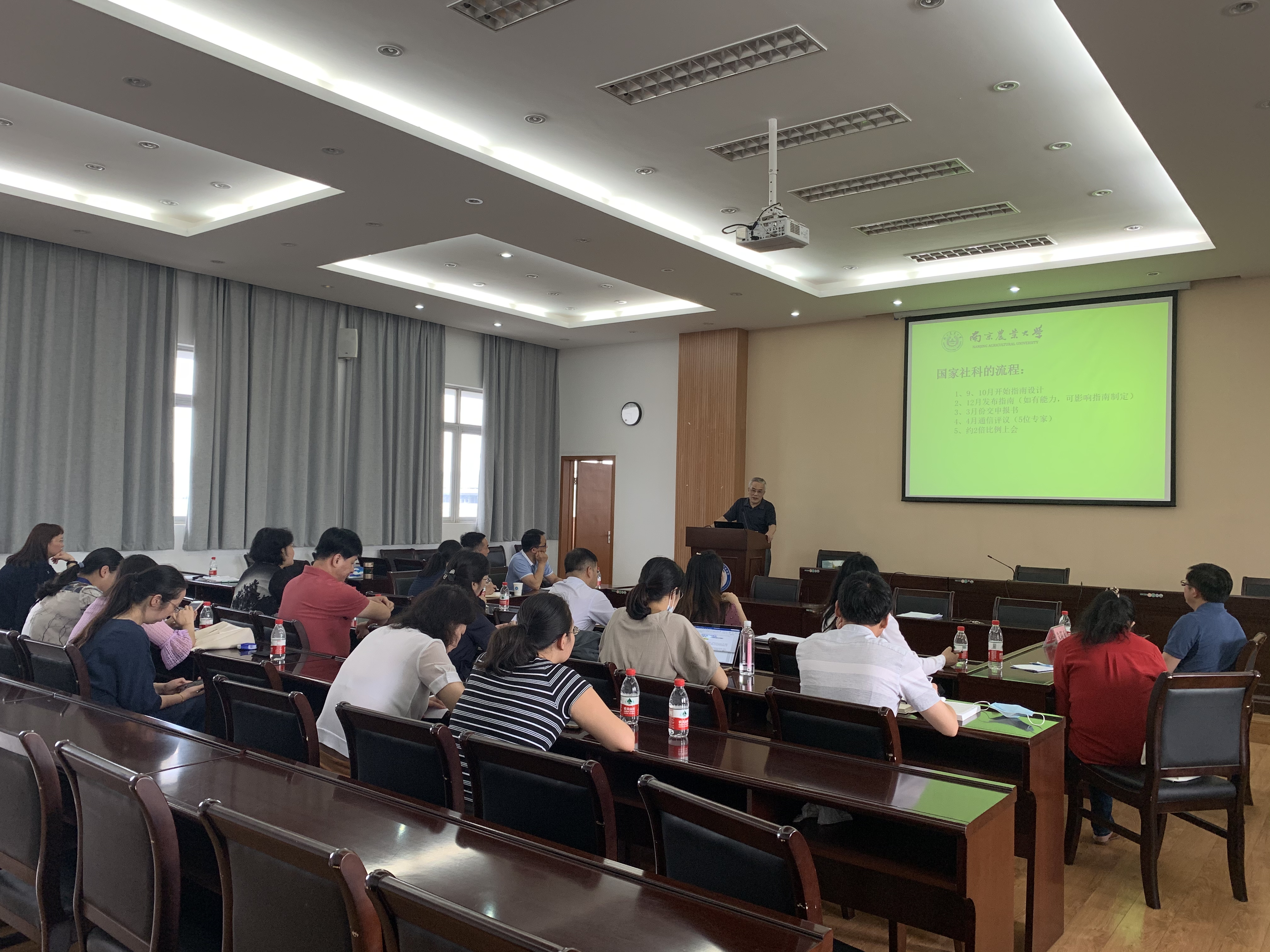 教师做科研项目申报辅导讲座表示热烈的欢迎和衷心的感谢,并介绍了他在自己学科领域取得的丰硕学术成就。