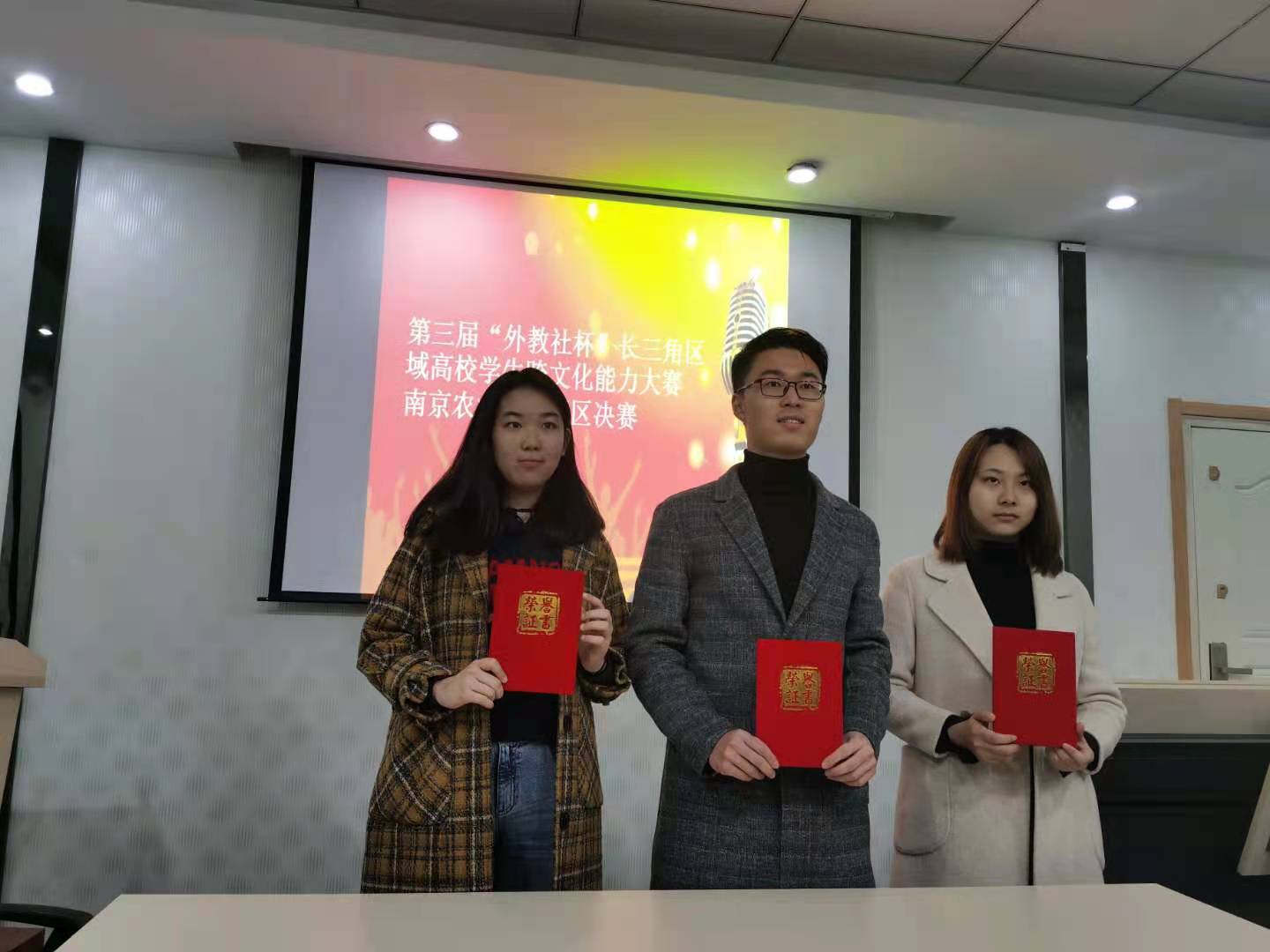 赛区决赛于教学楼A310举行。本次大赛共有12名选手进入决赛,经过激烈角逐,陶冶、孔苏扬、解欣然三名同学获得一等奖,将代表我校参加第三届“外教社杯”长三角区域高校学生跨文化能力大赛。