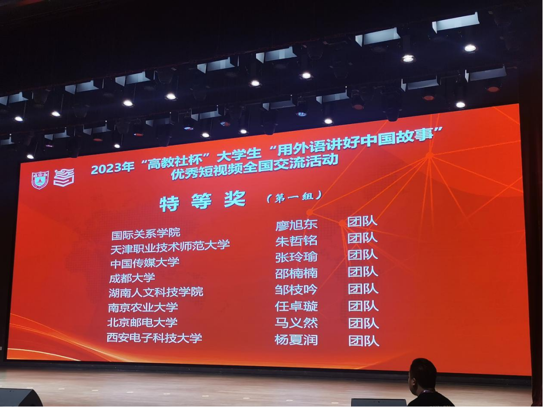 此次活动以“大美中国·故乡风韵”为主题,参赛团队从“历史华章、山水寄情、文化传承、舌尖美食”任选一主题,综合运用多元叙事技巧和丰富视听语言,并用全英文的形式讲述短视频内容,展现大美中国,传播中国文化。活动共收到来自全国29个省市自治区的823所高校提交的5111份作品。在经过为期五个月的校级、省级评选,最终来自74所高校的81件作品进入此次全国现场交流互动环节。我校选送作品以总决赛排名第六的优异成绩,最终获得全国特等奖。