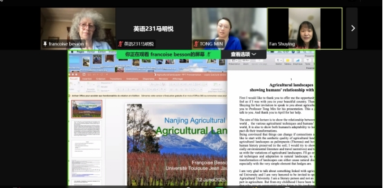 师生献上一场题为《农业风景:生态视域下的跨学科叙事》的学术讲座。本次活动由学院副院长童敏主持,60 余位师生通过云端参与这场跨国学术对话。