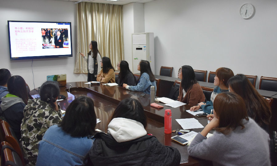 日语本科生党支部《人民日报》学习汇报交流活动在教学楼E302举行。日语本科生党支部书记贾琼、副书记欧文睿以及支部全体党员参加,活动由欧文睿主持。