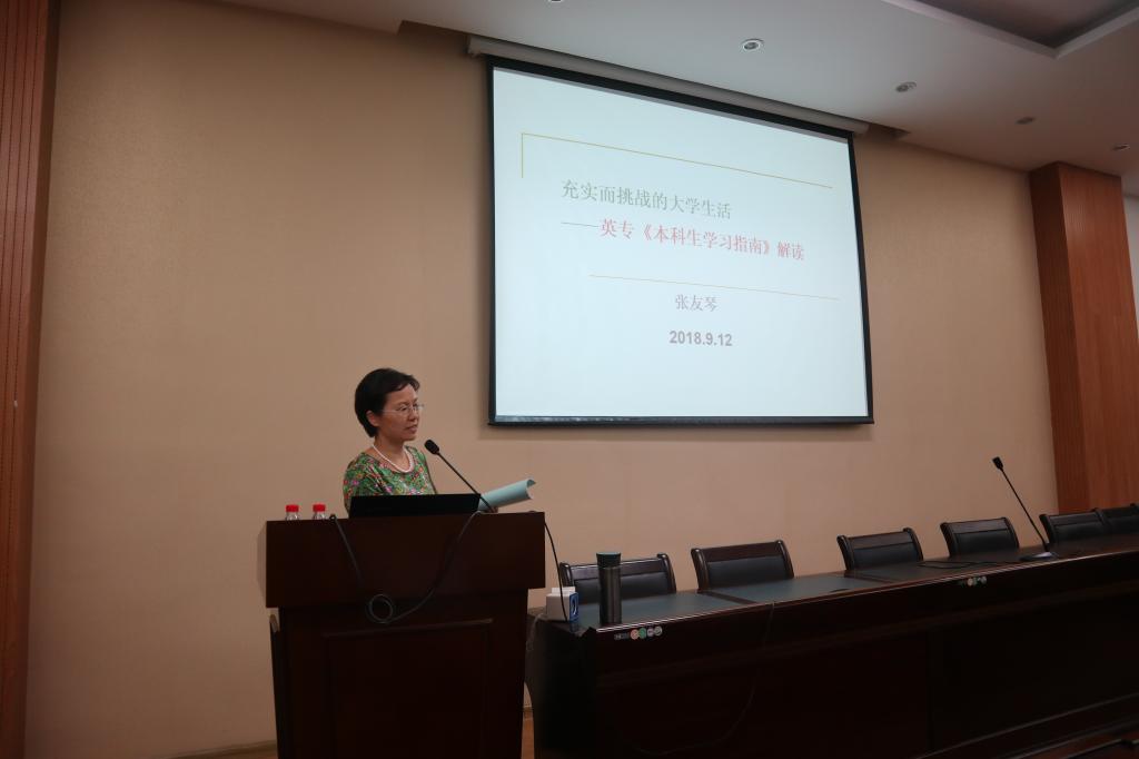 首先,在甄亚乐介绍了张友琴和顾明生后,张友琴对英语专业培养方案进行了解读。她详细阐述了英专的培养目标:培养“研究型拔尖人才”和“复合应用型人才”。及英专的培养要求:要有扎实的基本功、宽广的知识面、相关专业知识,听、说、读、写、译等要准确适切流利。接着介绍了英语专业四、六级考试,及黄色动漫