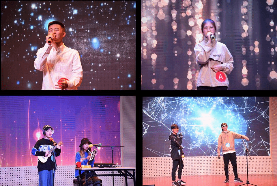 在酷炫的开场视频和活泼的学生干部们的舞蹈中,比赛拉开了帷幕。紧接着,第一组的巩明霞和潘红羽同学以“喜欢”为主题,用《玫瑰》和《Red》给我们带来了或单纯而炙热、或简单而怀念的“喜欢”。第二组的昌伦越同学以一首《Light》,配上热情互动,带动了全场气氛;同组的宋博涵和钟日洲同学则带来了个性十足的《爱之初体验》,他们用自己幽默的台风诠释了“希望”的主题。第三组的缪沁原和赵佳婧同学以“时间”为主题,分别选择了《忽然之间》和《好心分手》两首歌曲,她们细腻深情的歌声戳中了在场观众的泪点。第四组的马文韬和袁朝同学分别给我们带来了《往后余生》和《奇妙能力歌》,用清新安静的旋律表达了他们对“世界”这一主题的理解。最后一组的张凌怡同学演唱的英文歌《Almost Lover》和赵雨丝&范语馨组合演唱的日语歌《いつも何度でも》与“再见”这一主题完美契合,虽风格各异,却令人大饱耳福。