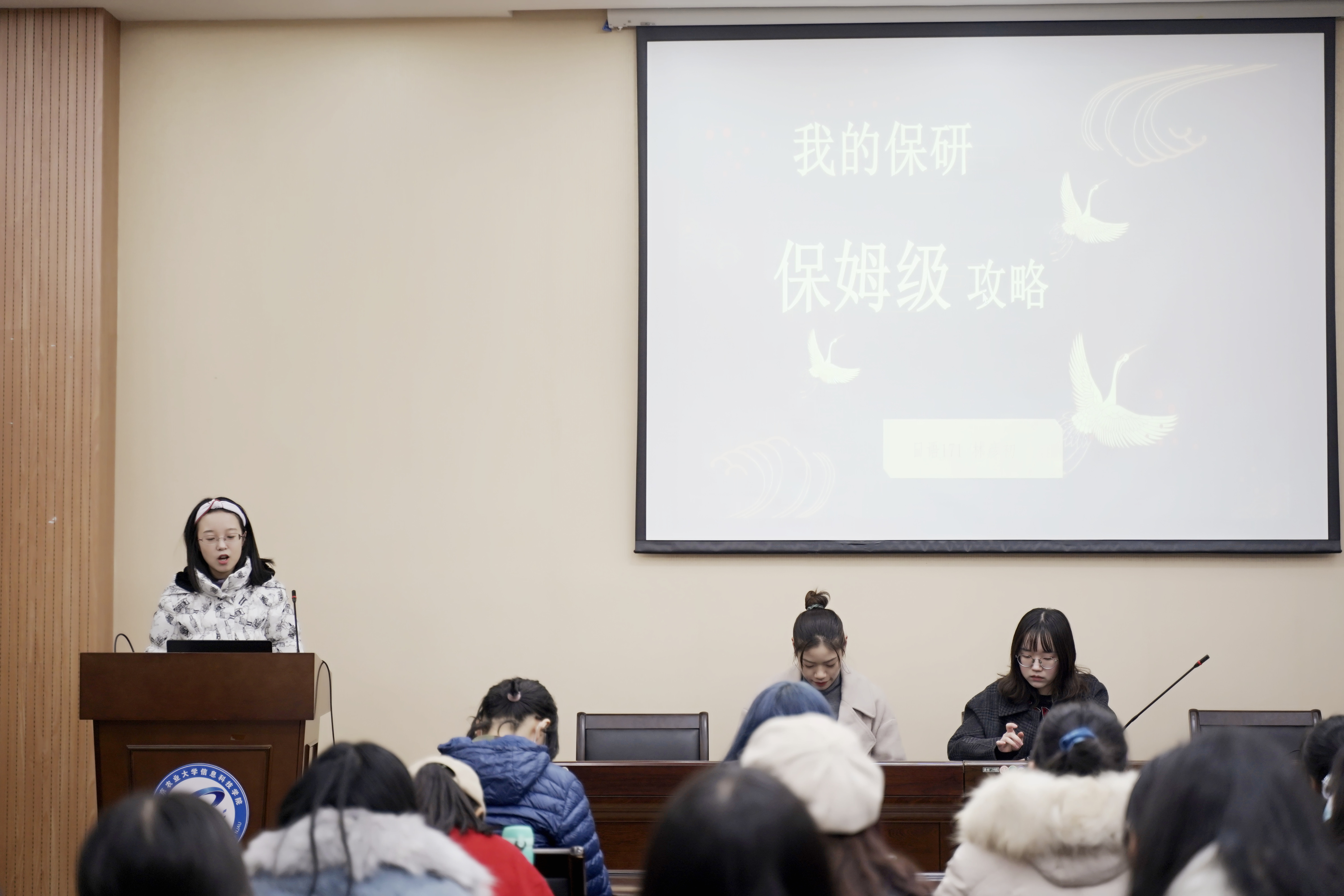 保研交流会在教学楼七楼报告厅举行。2020年推免的五位2017级学生为黄色动漫