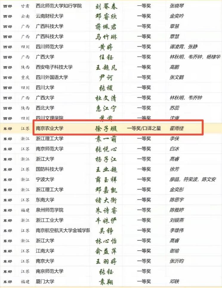 学生在全国韩素音国际翻译大赛、“华政杯”全国法律翻译大赛、“上电杯”全国科技翻译竞赛、“LSCAT”杯江苏省口笔译大赛、“板桥杯”青年翻译竞赛等多项国家级竞赛中斩获大奖,参赛人数、获奖人数、获奖级别逐年提升,效果明显。