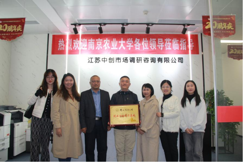 党委副书记韩立新、辅导员曹璇、闫家谊及部分研究生;南京市农业农村局蔬菜园艺处副处长薛建波;江苏中创市场调研咨询有限公司总经理、江苏省统计调查服务行业协会会长冯学悟,江苏中创市场调研咨询有限公司副总经理庞薇薇、人力资源部经理陈慧影等参加签约仪式并进行了交流座谈。